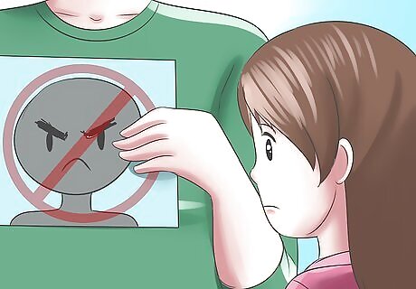 Reinforce and teach good behaviors with visual cues. Pictures and colors can do an amazing job of controlling challenging behaviors and correcting negative behaviors of autistic children. A picture of a red circle with a line passing through the circle indicates "no". This symbol can be used to let the child know that something - be it their behavior or their movement in a particular place - is not allowed. If a child needs to be prevented from leaving the classroom, then this symbol could be put on the door. If certain behaviors are to be prevented, a chart or poster showing all the behaviors which are unacceptable with a universal "no" symbol beside each of them can be used. This can help them to understand that behaviors such as ripping up paper or hitting others are not allowed.