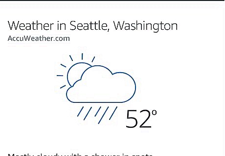 Review recent questions. When you open the app, you are taken to the home screen where you can see a "card" for the most recent questions you have asked Alexa. If there is more info on your question, you can see it here or click a link on the card to see more. The extra information displayed on cards will vary depending on the question: "Alexa, what's the weather?" This card will have more detailed weather info, including a five-day forecast. "Alexa, Wikipedia otters." This card will give you link to the Wikipedia page on otters. "Alexa, how did the Rockets do?" This card displays a breakdown of the points by quarter and details of when the next game is scheduled.