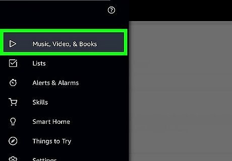 Tap the music icon to control audio playback. This icon looks like 3 vertical bars (like an equalizer) at the bottom of the screen. When music is playing, you can view album art, the title of the song, album, and artist, as well as controls to play/pause, skip, shuffle, and repeat. Tap "Queue" to scroll through and select a different song from the current album. For podcasts, you can view info on the podcast and play/pause. Tap "Queue" at the top of the screen to scroll through and select an earlier episode of the podcast. For an Audible book, you can view info on the book, play/pause, go back or forward 30 seconds and seek through the current chapter. When Alexa is reading a Kindle book, you have the same controls as with an Audible book except you cannot seek to a different point in the chapter. Tap "History" in the top-right corner to view a list of all the music, podcasts, and audiobooks you have played. This comes in handy if you were listening to shuffled songs and want to find the name of a song that was played or play it again.