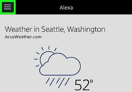 Tap ☰ to browse additional settings. It's the three-lined icon in the top-left corner of the screen. This will open the main menu for the Alexa app on the left-side of the screen. This offers a few options to view additional settings: Tap "Lists" to check-off tasks from your To-do list or take a look at your grocery list when you go to the store. Tap "Reminders & Alarms" to add in new reminders, look at active alarms and manage their volume and sounds, and see a countdown from your active timers which you can pause from this screen if you wish. Tap "Routines" to combine different Alexa functions into a single voice command. (For instance, turn on your Alexa-enabled lights and hear a traffic report when you say, "Alexa, good morning.") Tap "Skills" to browse or search through the Skill Store or manage your Skills by tapping "Your Skills" in the upper right corner.