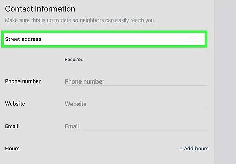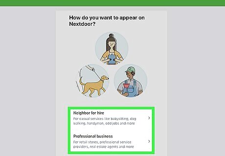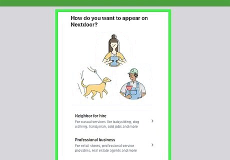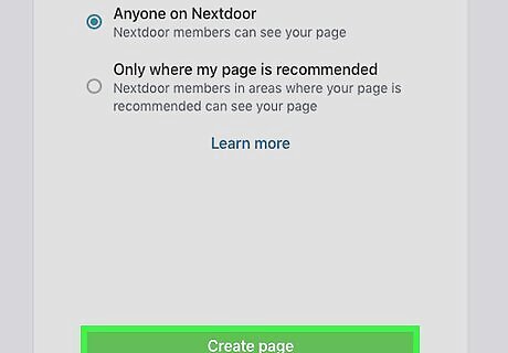Enter details about the business. Nextdoor will ask you about the business, such as its name, what it does, and location. You can also pick if you want the business page to be visible to nearby neighbors, Nextdoor members, or the public.