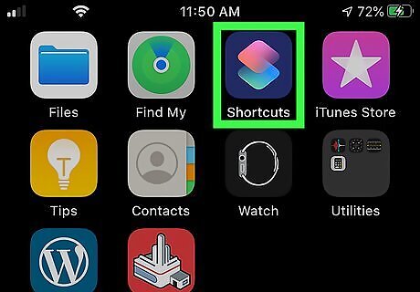 Open the Shortcuts app. It's the dark blue icon with two overlapping multicolored diamonds. You should find it on your home screen, though it may be hiding in a folder.