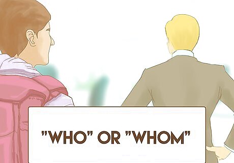 Pick "who" or "whom" for people. You use "who" when the pronoun refers to people. A pronoun is just a word that refers back to a noun, such as in these two sentences: "Robert ate an apple. He threw the core away." "He" refers back to "Robert." Therefore, when the pronoun refers back to a person, you use "who." For example, you would say, "Robert, who was trying to lose weight, ate apples." "Who" refers back to "Robert," which is why you use "who" instead of "that."