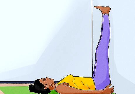 Lie down and put your butt against the wall for Legs-Up-the-Wall Pose. Start Viparita Karani by lying flat on your back, sliding your backside against the wall, and lifting your legs straight up and flat against the wall. Turn your palms upward and rest your arms to your sides on the floor. Focus on your breathing, close your eyes, and hold this pose for 3-5 minutes. Place a pillow under your neck if you need additional neck support. Alternatively, place your legs (with your knees at 90 degree angles) on a chair or couch. Both forms of the pose may help you with upper or lower back pain.