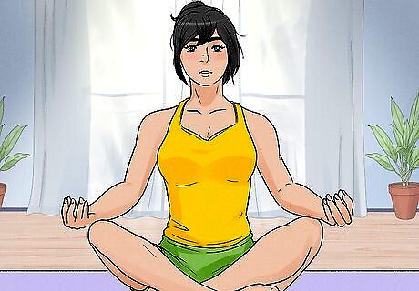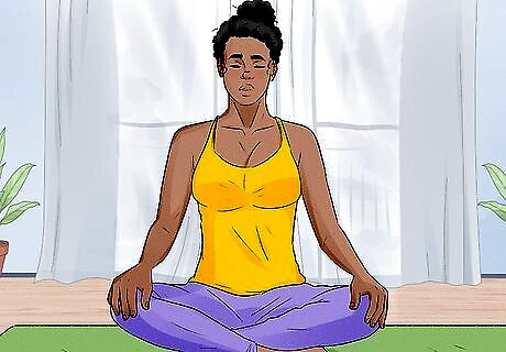 Focus on breathing in a slow, deep, relaxed manner. In yoga, the formal practice of breathing is called Pranayama. You want to focus on inhaling and exhaling deeply in a balanced manner. By focusing your breathing you are allowing yourself to relax and tune into your body. There are various breathing techniques used in yoga. Try attending a few classes or watching some instructional videos to find the technique that works best for you. One popular technique is called Ujjayi (also called Ocean Breath and Victorious Breath). It involves breathing in and out exclusively through the nose, and constricting the back of your throat while you exhale so your breath sounds like ocean waves.