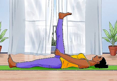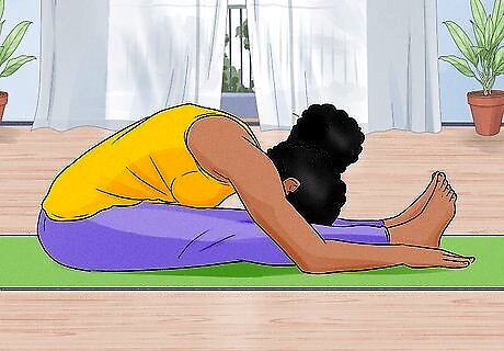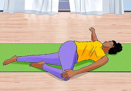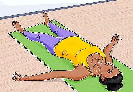 Make yourself comfortable and finish up with Corpse Pose. To do Corpse Pose (Savasana), lie flat and let your arms and legs relax. Breathe naturally, instead of doing any special breathing technique, and allow your body to feel heavy. Relax your face. Hold this pose on the floor for 3-5 minutes, or use it in bed to drift off to sleep! You can also turn on your side and curl into the fetal position. This is a primal protective position, and it can be very calming.