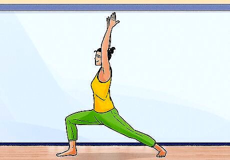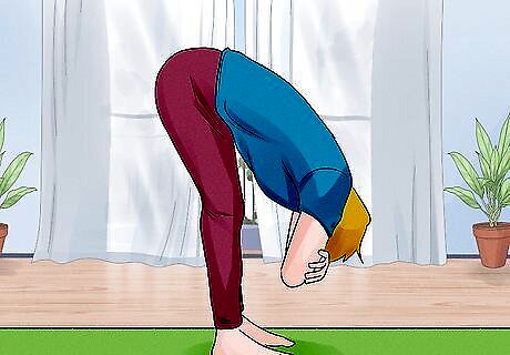 Do a Standing Half-Forward Bend variation against the wall. Begin Ardha Uttanasana by standing about 1 ft (30 cm) from the wall with your feet hip-width apart. Place your palms against the wall, shoulder-width apart and at just above hip height, then slowly step back until your arms are fully extended and your upper body is at a 90-degree angle with both your legs and the wall. Press your palms into the wall and your feet into the floor, keep your arms tucked against your ears, and maintain a straight line from your hips to your palms. Hold this pose for up to 5 minutes.