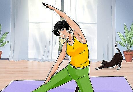 Choose poses that will calm you, not make you sweaty and more alert. Remember that the goal here is to fall asleep! Skip any high-intensity yoga poses for now, and consider saving them for morning as part of your daily wake-up routine. If you want to do yoga in the morning as well, search online for "wake up yoga" (or similar) to find quick routines suited to getting your day going. Or consider signing up for a morning yoga class.