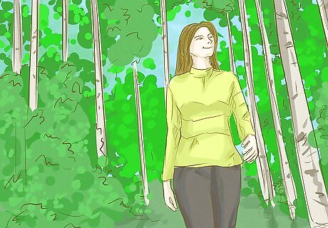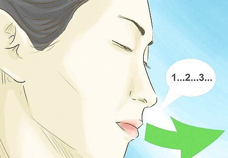 Ground yourself with alternate nostril breathing. After doing some deep yogic breathing to start, place your right thumb over your right nostril and inhale deeply through your left nostril. When you've inhaled all you can, use your fourth finger to close off your left nostril and lift your thumb so that you can exhale out of your right nostril. Next, inhale through your right nostril, then cover it with your thumb. Lift your fourth finger so you can exhale out of your left nostril. Focus your mind on your breath, continuing this cycle for three to five minutes.