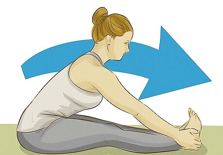 Stimulate your liver and kidneys with a seated forward fold. The seated forward fold stimulates your lower internal organs to improve digestion as well as providing some relief for high blood pressure, sinusitis, and sexual disfunction. Come to a comfortable seat on the floor. You may want to support yourself with a folded blanket so that you are sitting with correct posture. Extend your legs out in front of you, flexing your feet and pressing through your heels actively. As you inhale, hinge forward from your hips, keeping your back long, and fold over the tops of your legs. Grab the sides of your feet with your hands. If you can't fold that far, you can grab your legs instead, or use a yoga strap to maintain the correct position. Hold the pose for 10 to 10 deep breath cycles. With each inhale, think about lifting and lengthening your spine. With each exhale, try to sink a little deeper into the fold.
