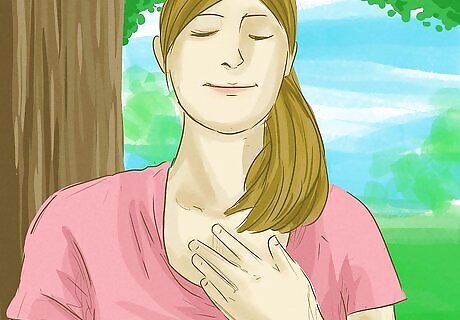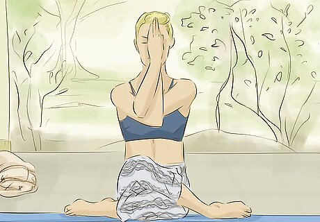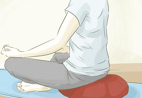 Start with deep breathing. Deep yogic breathing will help relax and center you. Inhale slowly and deeply through your nose to the depths of your chest, imagining that you are slowly filling your lungs from the bottom to the top. When you've inhaled as much as you can, pause for a moment to appreciate the feeling of your lungs being full of air. Then slowly exhale out of your mouth, thinking about releasing the air from your lungs from the top all the way to the bottom. Pause again when you've exhaled all the air before beginning an inhale again. Continue this cycle, keeping your mind focused on your breath.