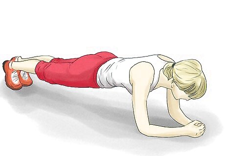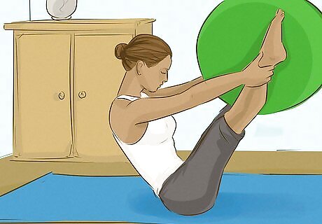 Try boat and low boat for lower abdominals and hips. Both boat and low boat require every muscle in your core and hips to be engaged. Get into boat pose by sitting on your mat with your knees bent so that your feet are flat on the floor in front of you. Extend your arms out in front of you, palms just to the side of either knee. Lean back so that your torso is at about a 45-degree angle from the floor, then lift your feet to straighten your legs. Try to angle your legs upward at the same angle as your torso. To progress into low boat, simply lower your torso until your lower back is flat on the floor. Lower your legs at the same angle at the same time, keeping your core engaged. Don't forget to maintain your deep breath. Hold these poses for 3 to 5 breath cycles.