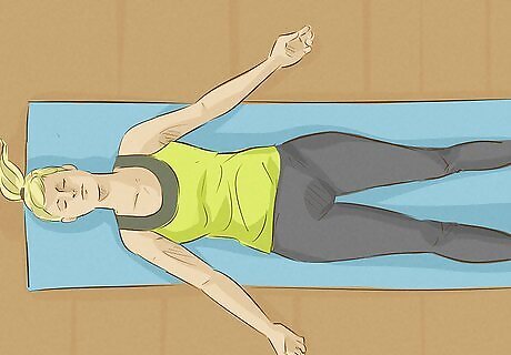 Rest in corpse pose. The corpse pose is the ultimate yoga pose for healing and relaxation. This pose helps increase your blood flow to all your organs. To get into corpse pose, simply recline on your back and extend your arms to your sides, palms up. Breathe deeply, relaxing all your muscles. It can help to think about your body sinking or melting into the floor. Press your lower back firmly to the floor and focus on your breath. You can stay in corpse pose as long as you feel comfortable.