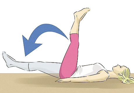 Boost your metabolism with raised legs pose. The raised leg pose can stimulate your abdominal organs, particularly if you remember to engage the muscles in your core while holding this pose. Lie on your back on the floor with your legs extended out and pressed together. You can rest your arms at your sides, or place them under your buttocks, palms down, to help support your lower back. On an inhale, slowly raise your feet until your legs are at a 90-degree angle from your body. Lower your legs to the floor as you exhale, but don't let them fall all the way to the ground. Remember to engage your core. Repeat the cycle for 5 to 10 breath cycles.