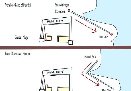Take the Western Line to the Goregaon stop and walk or catch a ride. Mumbai has a bustling train system. Get to the Western Line by transferring downtown from a Central line or by getting a ride to one of the stops. From downtown, take a Western Line train towards Borivali or Virar. Get off at Goregaon and walk 40 minutes east to Film City. You can also grab a taxi, rideshare, or rickshaw to the main gate from the train stop. You can transfer to the Western Line from the Central line at Dadar. The train costs $0.15 per ticket. You have to buy the ticket at the train station before entering and waiting for the train. If you’re looking at a map, the Western Line is the vertical route on the left travelling from the southern coast to the northern suburbs. Goregaon is just south of the river on the northern half of the line.