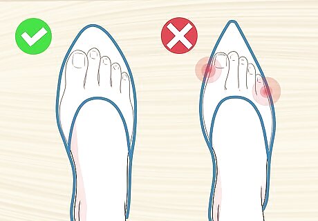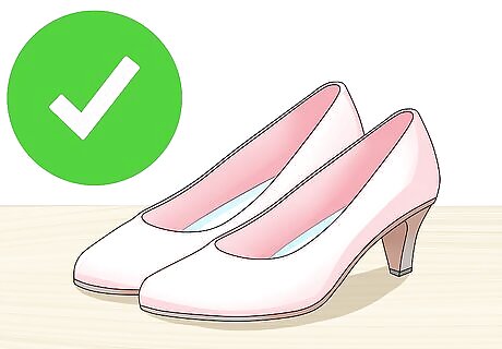 Choose shoes that are comfortable. You want a pair of shoes that your feet feel comfortable in for the whole day. Look for shoes that don't pinch your feet on the sides and don't crush your toes. Stick with shoes in a style that you usually wear.