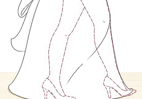 Let your dress hit your leg on each step. As you move your foot forward, your dress will fall back. Let your dress hit your leg before you put your foot down. This ensures you’ll never step on your dress or trip.
