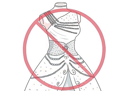 Reconsider a heavily beaded gown. Wedding dresses weigh 5 to 10 pounds on average, and adding beading can add another t to 10 pounds. If you’re worried about making it down the aisle in one piece, avoid heavily beaded gowns. Lighter materials like cotton or organza will create a beautiful dress with less weight, and you can always look for dresses with a little bit of beading.