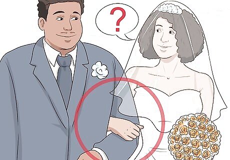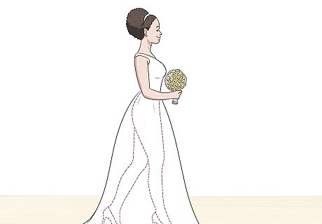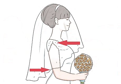 Keep your shoulders back. If you walk with your back straight and shoulders back, your dress will look great. Good posture will also make it look like you’re excited about getting married, rather than dreading it, as a hunched back might suggest.