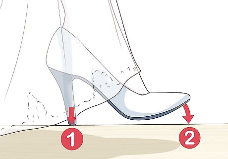 Walk toe-to-heel. If you're not used to wearing heels, you might be tempted to put your toe down first and then your heel. This is a really easy way to trip! Instead, plant your heel first and then let your toe fall.