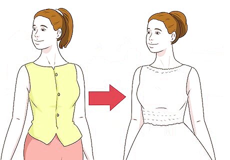 Wear a dress that’s similar to your normal style. As you’re walking down the aisle, you don’t want to worry about a strapless dress falling down, or have to deal with straps digging into your arms. Choose something that’s similar to your normal style. This way, you know you’ll be comfortable in the dress. For example, if you don’t often wear strapless dresses or tops, don’t choose a strapless dress.