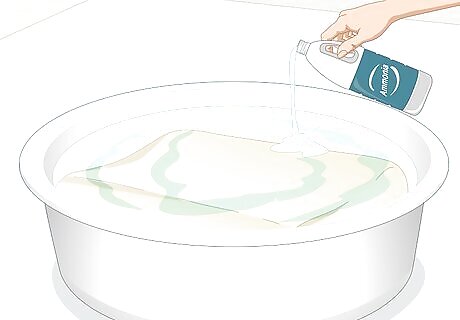 Use an ammonia and water mixture if Borax isn’t available. One common household chemical that can get rid of mildew and mold is ammonia, which you can mix with water to clean your cushions. Adding 1 cup (240 mL) of ammonia to 1 gallon (3.8 L) of water in a large container creates a great solution for you to scrub mildew off cushions with a brush. Be sure to use gloves when cleaning with ammonia.