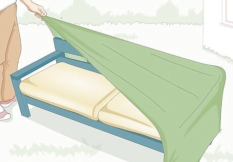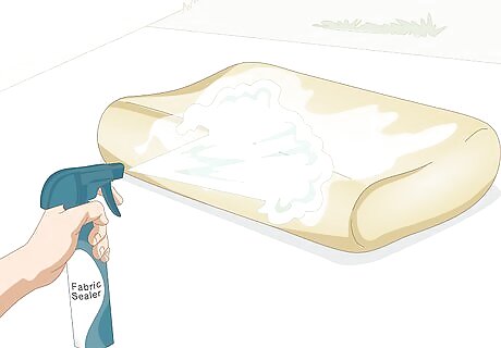 Apply a coat of fabric sealer or protector. There are products available that will help waterproof or at least seal your cushions from water damage. Pick some up at a hardware or home and garden store, then spray it all over the cushion from around 3 feet (0.91 m) away. This will help keep mold, mildew, and stains off your cushions and provide protection from sun damage or fading, too.