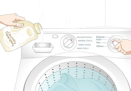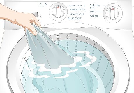 Load the covers in the washing machine. If the care tag recommends machine-washing, simply place the covers in the washer. Be sure to follow any special instructions described on the care tag, like the machine specifications or the cycle to use. You can throw the covers in with another load, or wash them on their own.