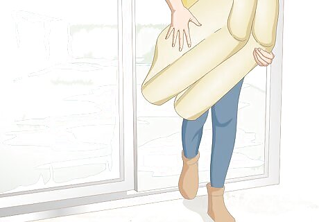 Bring your cushions in when it rains or snows. During rainy or cold seasons, keep your cushions indoors or in a secure outdoor container to keep them dry and safe from freezing temperatures. Even during a brief summer storm, it is a good idea to put outdoor cushions in a safe, dry place. Cushions under umbrellas are still vulnerable to rain. Bringing in the umbrella is a good idea, too, as it can also get rain damaged.