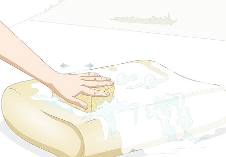 Scrub the suds onto the cushions with a sponge or soft brush. Use your hands to get dirt off and a soft-bristled brush, like the kind you would use to wash dishes, to rub the fabric until tough stains come off. The brush should be abrasive without feeling like it might tear the fabric. If you use a sponge, rub vigorously on the cover so that it gets as clean as it would with a brush.