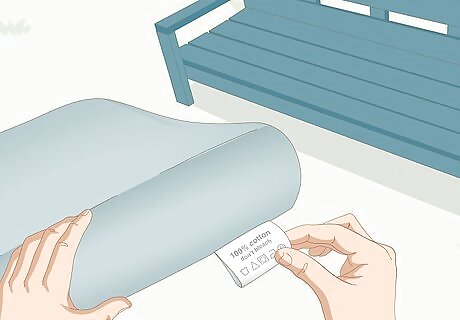 Check the cushion’s care tag. The manufacturer’s care tag on the cushion may have restrictions on whether or not you should machine wash the cover or the cushion itself. Each cushion and cover is different, and some have sensitive coatings that protect the fabric from damage. The tag will often provide detailed care instructions for you to follow. If either the covers, cushions, or the whole pillows suggest hand-washing, skip to the section on hand-washing your cushions.