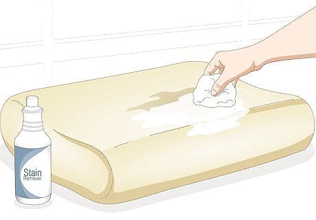 Pre-treat the cushions by rubbing a stain remover on large stains. If the cushions are especially stained, using a stain remover before throwing them in the wash will help the washing machine break down the stain. Stain removers can be found in most home goods stores. You don’t need to rinse off the stain remover, as you will be washing the pillow immediately after removing the stains.