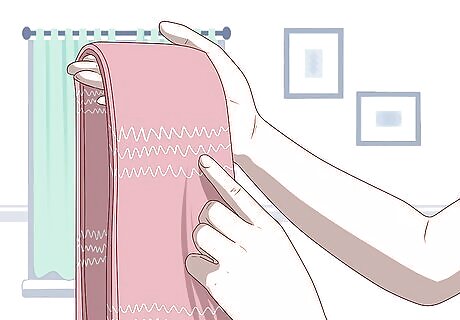 Begin pleating. Pleat and tuck the fabric moving left to right. Make small, even pleats as you go. Hold the fabric straight as you pleat to keep the proportions even. This step can sometimes work best if you enlist the help of a friend or family member. If you find you keep having trouble pleating, ask someone to assist during this step.