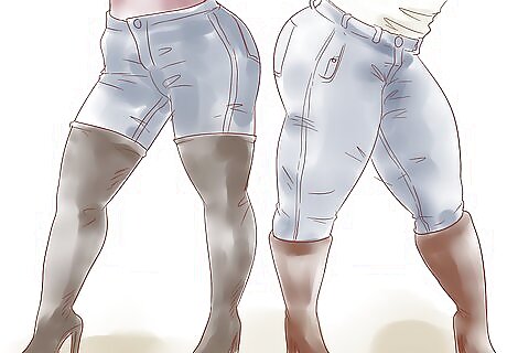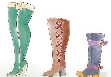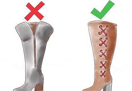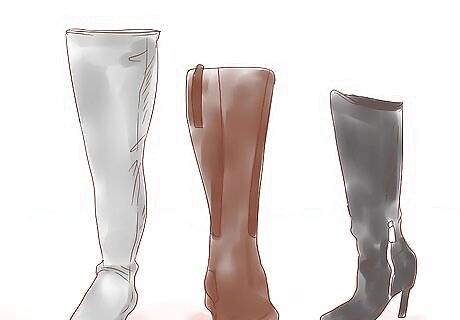 Avoid boots that land at the thickest part of your leg. This is especially true for women who consider their legs to be one of their problem areas. If you have thicker thighs, avoid boots that reach up to your mid-thigh. The horizontal line across the top will only make your leg look wider. Instead, opt for knee-high boots or boots that rise just above the knee.