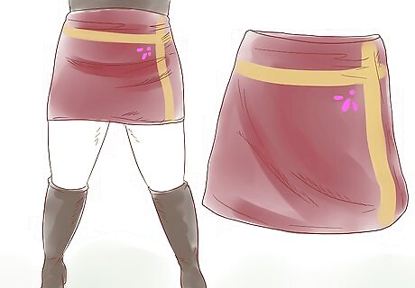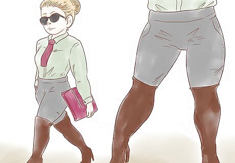 Pair your boots with a miniskirt. You can either pick a more subdued mini-skirt, in brown or black or grey, or you can go all out with a neon blaze of color. You can successfully give the illusion of showing a lot of leg without actually being scantily clad. Be careful of how strong your overall impression is giving. A very short skirt with tall boots may not be appropriate for a professional office, even if you are not actually showing anything inappropriate. You may be better off with a more conservative just-above-the-knee length. Wearing opaque with your mini-skirt and boots adds a touch of class to your cute outfit and will also keep you warmer if it's fall or winter. Going without leggings or tights creates a more daring look, and shows off your legs. This is a great look for going out at night, or in warm weather.