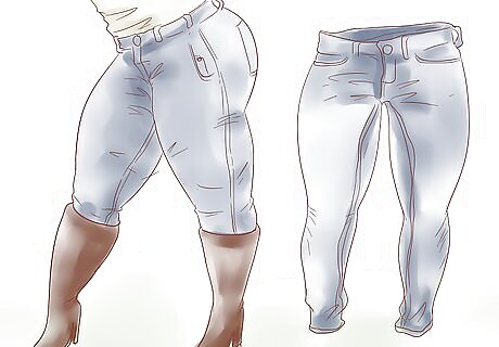 Wear riding boots. There are two different types of riding boots: Cowboy boots, and the English style riding boots. Both types can help foster a great casual look for your outfit. Both best with sleek lines (like skinny jeans or leggings Cowboy boots can be a very regional fashion trend. For example, it may be common in Texas, USA, but seen as acceptable but perhaps rather quirky in Quebec. For a subtly Western look pair cowboy boots with sleek trousers or skinny jeans (distressed jeans are particularly good) and a blouse. You can also do leggings and sweater/sweater dress for a good fall fashion. Riding boots, especially cowboy boots, can go a long way towards toning down a really feminine dress. They can help balance out a really frilly or flowery dress, an especially good look for spring.