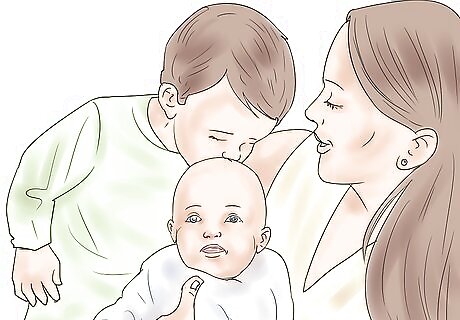 Introduce the adopted baby to siblings. If you have prepared your other children for the arrival of the new baby, they will probably be dying to meet their little sibling. Make the introduction in a calm, controlled environment with just the immediate family members present. Some kids can have unrealistic expectations about what the baby will be like - they may expect to be able to play with them and treat them like a doll. The baby might have other ideas, however, and become scared or overwhelmed by all the attention. As a result, it is best to warn older kids that their new sibling will be shy and that they will have to be very kind and gentle towards them.