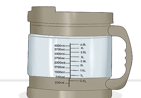 Fill the water container to the indicated fill line. Depending on the make and model of water distiller that you have, you’ll need to either remove the top of the distiller to expose the water container or remove the water container from inside of it. Fill the container to the indicated line with water, making sure you don’t overfill it. Overfilling the container can cause the water to bubble over when it’s heated and potentially damage the distiller. A water distiller can only purify small batches of water, so you’ll need to purify multiple batches to create a lot of distilled water.