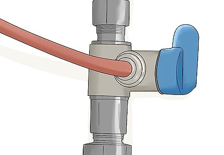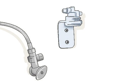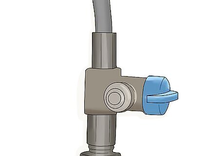 Attach a splitter to the cold water supply valve. The splitter is a plastic piece that will divert your water supply to either your regular faucet or your filter’s faucet. Screw it onto the threaded opening of your water supply valve, where you disconnected the water line that runs to your sink. Make sure it’s attached securely so it doesn’t leak.