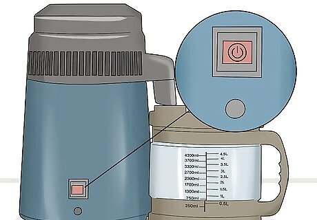 Turn on the water distiller by pressing the power button or flipping the switch. Look for a power switch or button on the front or side of the distiller. Flip the switch or press the button to turn on the distiller to start purifying your water. The distilled water is safe to drink, but it won’t have any of the essential minerals that your body needs, so be sure to drink other clean water as well!