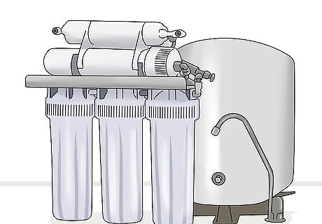 Choose a reverse osmosis filter for the best filtration. Reverse osmosis (RO) refers to the process of forcing contaminated water through a fine membrane to remove contaminants. Purchase an RO filter unit that you can install beneath your sink to filter the water coming out of the faucet to purify it. RO filters can cost several thousands of dollars to purchase, but they will remove more contaminants than other filter systems.