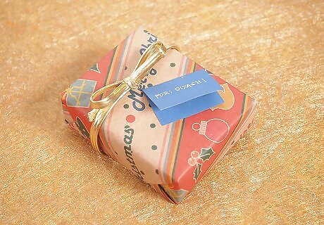 Cut a small rectangle and fold it in half and write the person its from (you) and the person it's going to. Add a bow and your done!