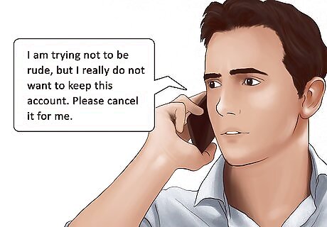 Notify customer service that you intend to cancel your account. When you have verified that you owe nothing on the account, tell the customer service representative that you wish to cancel the account. Credit cards are a sales business, so be prepared for the representative to try to change your mind. You may be offered a lower interest rate or even some sort of incentive gift to keep the account open. If you wish to accept one of these offers, be sure that you understand the terms of your new account. Otherwise, proceed with the cancellation. For example, when the sales representative offers you a lower interest rate or a trip to Las Vegas, you might reply with, "Thank you very much for the kind offer. However, I have really decided that I don't need this card, and I wish to cancel it." You need to sound decided, or the sales representative is likely to keep pushing. Eventually, you may just have to say, "I am trying not to be rude, but I really do not want to keep this account. Please cancel it for me."