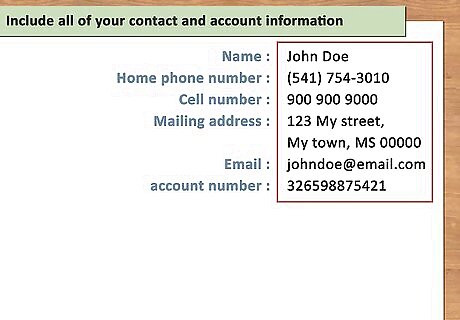 Include all of your contact and account information. The letter should have your name, home telephone number, cell number, mailing address, email address and account number. Reference all of this information at the top of the letter, before the body of the letter.