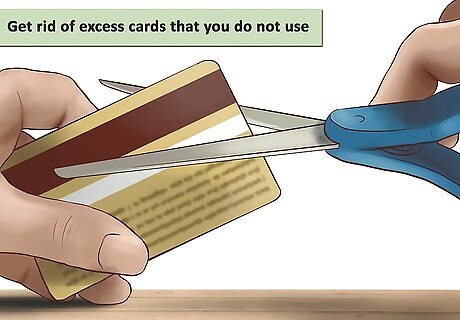 Get rid of excess cards that you do not use. Your credit score is optimized when you carry a few open credit cards and manage them well. If you are carrying excess cards and not using them, this could be reflected in a lower credit score. You may find that cancelling some of the excess cards may have a positive effect on your credit score. A review of your credit report will list "risk factors" that account for a low score. One of these risk factors may be "too many credit cards."