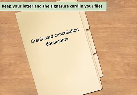 Keep your letter and the signature card in your files. You should maintain a file consisting of your closing credit card statement, any notes from your telephone conversations, and a copy of the letter you sent and the post office signature card. In case any problem arises from this account after you believe it has been closed, you will want to refer to these documents.
