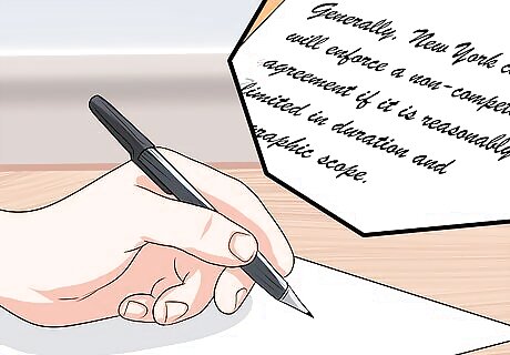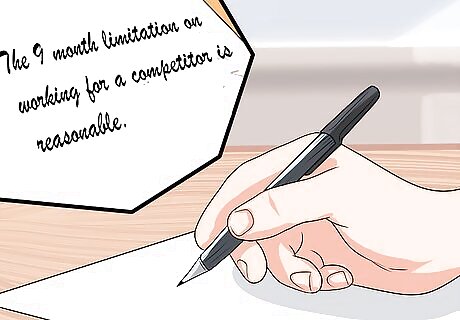Analyze the facts in light of the law. Now you apply the law to the facts and explain whether the facts violate the rule or are in accordance with it. As an example, you could write, “The 9 month limitation on working for a competitor is reasonable. New York courts routinely uphold limitations of at least a year in length, especially where, as here, the employee possesses specialized knowledge.” Stay objective. If you think the law does not support the position favored by your client, say so. If you’re unsure about how the law applies to the fact, then state that you are unsure. Not all legal questions have clear answers. Remember to include citations. The reader will want to know what legal authority you are relying on.