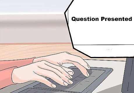State the question presented. At the top of the memo, type “Question Presented:” and then state the issue you were asked to research. Because the memo is objective, your “statement” of the issue should not answer the question one way or the other. Instead, you should phrase the issue in neutral terms. For example: “Whether client’s non-competition restrictive covenant is enforceable when it limits employment for 9 months after termination and prevents employees from working for a competitor within a 100 mile radius.”
