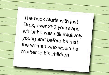 Write a plot outline before you start writing the book. The plot will give you kind of a guideline, necessary to make a focused book. It's harder to write the book with no sense of direction than it is with a solid idea of the backbone of the plot. That said, some people do prefer the directionless style and it is highly dependent on the way your own creativity comes through. Do a little experimentation. Even with a plot, sometimes your character will surprise you. That's the art of good writing, letting your character inform you as he or she changes through writing. Remember that your vampires aren't human, so they will see things differently. That includes humans. This is an excellent chance to describe human nature the way you see it if you see it in an unusual way. When explaining how the people were changed into vampires, tell it from their point of view, it's okay to change the viewpoints once in a while, especially in a vampire story.