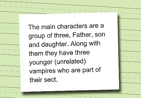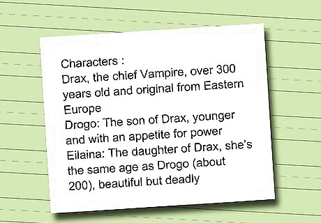 Think up of some characters. Are you going to focus on a single vampire among humans (or elves, dwarves, aliens, or whatever)? Or, do you want a whole cast of vampires? Each character will need to be developed fully, so start out with a few until you're more experienced with writing.